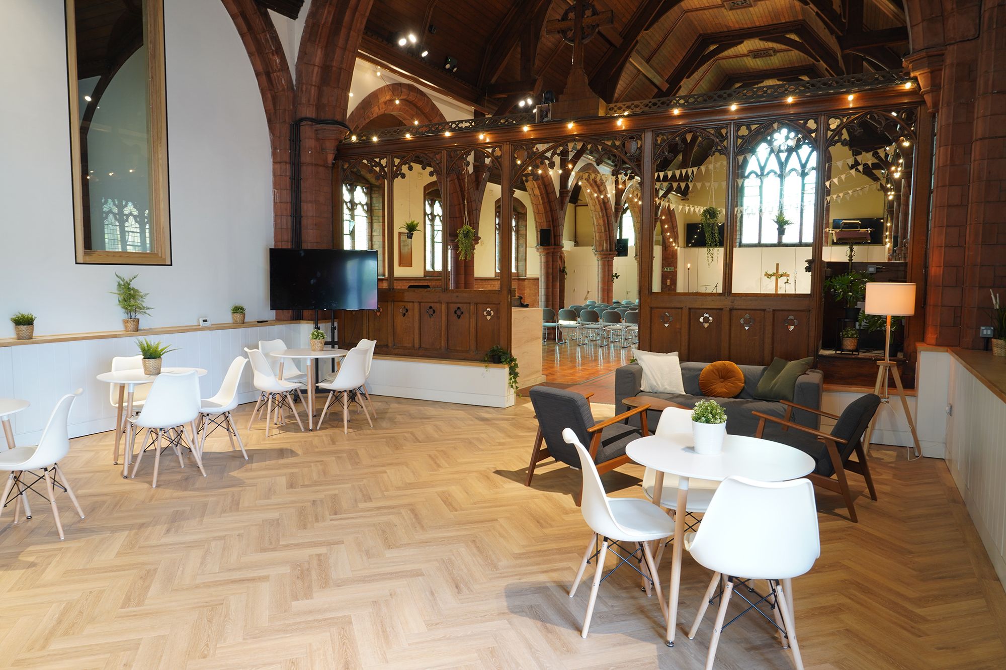 At St. Werburgh’s a radical intervention of turning the orientation of the church building was developed following an exhaustive options appraisal. This work involved creating a new accessible entrance at the east end of the building, into a new café space, new west facing nave dais and an enclosed meeting / consultation / prayer space. A second phase of work is planned that will unite the hall with the church building.
