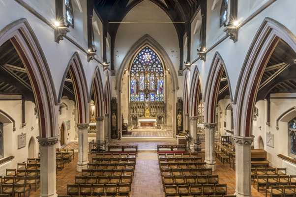 The Cathedral has embarked upon a major reordering and restoration scheme to this significant Grade II* Listed Pugin design. The works commenced with the repair of the liturgical East Window to the Sanctuary. After its successful completion, the Kepczyk Sanderson + Associates appointment was extended to include several more phases of conservation and repair.
